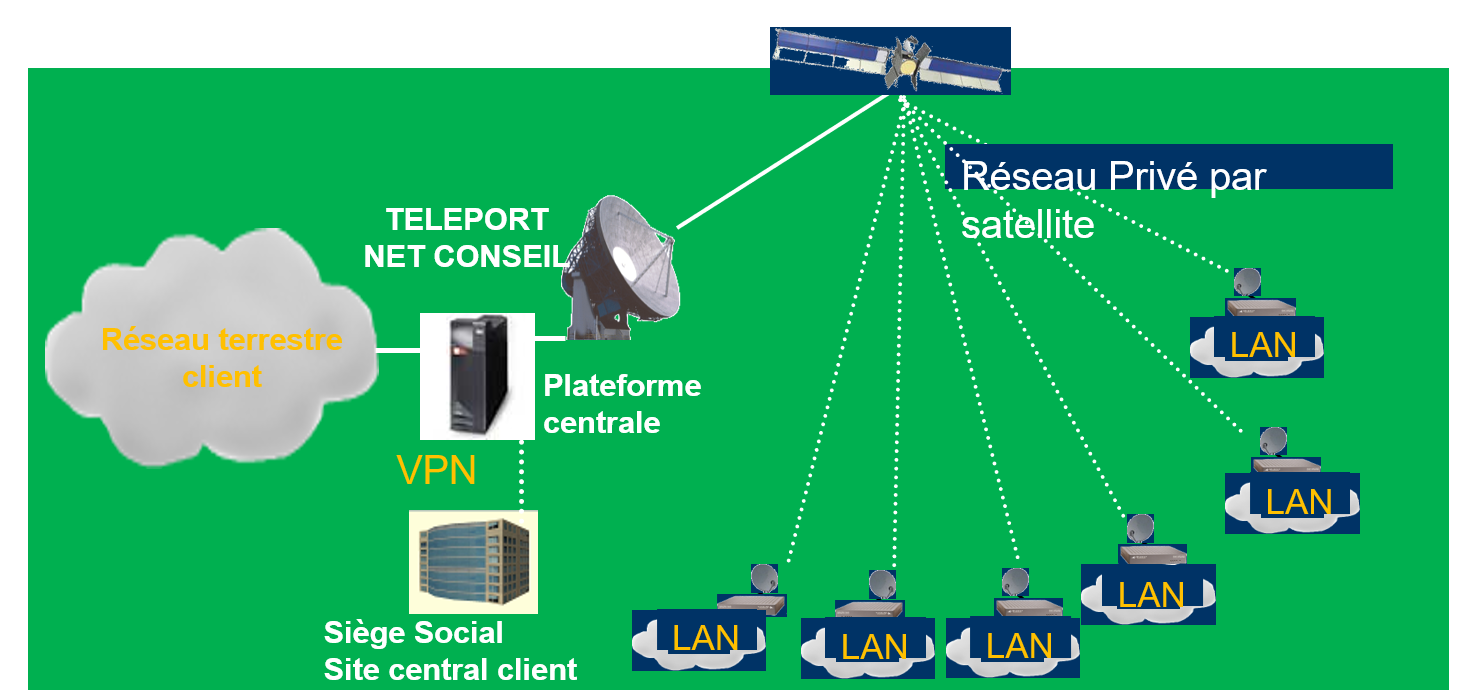 NET CONSEIL conçoit et déploie des réseaux d’entreprise sécurisés via satellite GEO (orbite géostationnaire), adaptés aux sites distants et aux environnements sans infrastructure terrestre.